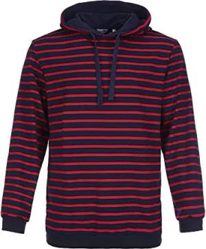 Bretonisches Kapuzenshirt Pullover gestreift Unisex - Streifenpullover Ringelpullover mit Kapuze aus Baumwolle in Blau/Rot Größe XXL