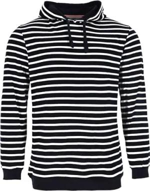 Bretonisches Kapuzenshirt Pullover gestreift Unisex - Streifenpullover Ringelpullover mit Kapuze aus Baumwolle in Blau/Weiß Größe S