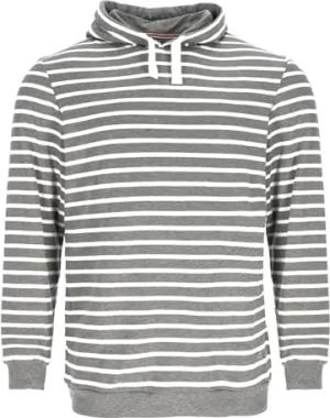 Bretonisches Kapuzenshirt Pullover gestreift Unisex - Streifenpullover Ringelpullover mit Kapuze aus Baumwolle in Graumelange/Weiß Größe L