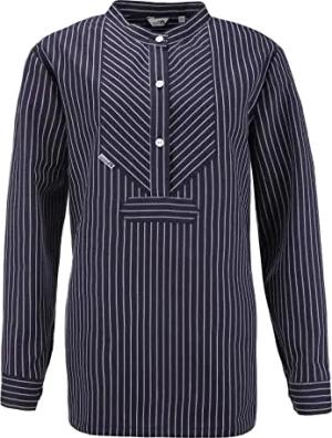Herren Französisches Fischerhemd mit V-Ausschnitt - Traditionelles Fischerhemd in Marineblau Größe XXL