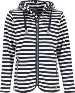 Damen Fleecejacke mit Blockstreifen - Gestreifte Jacke mit Kapuze und maritimen Details in Blau-Weiß Größe 38