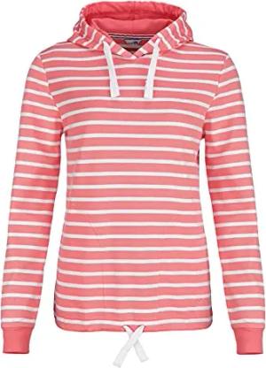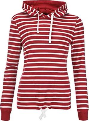 Damen Kapuzenshirt Langarmshirt gestreift - Kapuzenpullover Streifenshirt Ringelshirt mit Kapuze aus Baumwolle in Rot/Weiß Größe 42