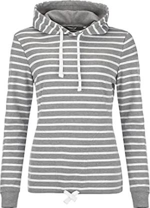 Damen Kapuzenshirt Langarmshirt gestreift - Kapuzenpullover Streifenshirt Ringelshirt mit Kapuze aus Baumwolle in Grau-Melange/Weiß Größe 46