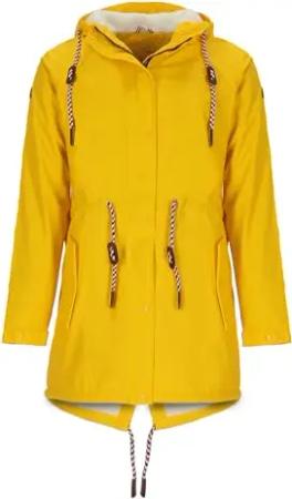 Damen Regenmantel aus PU - Frauen Regenjacke gefüttert mit Teddy-Fleece Futter wasserdicht in Gelb Größe 32 bis 38