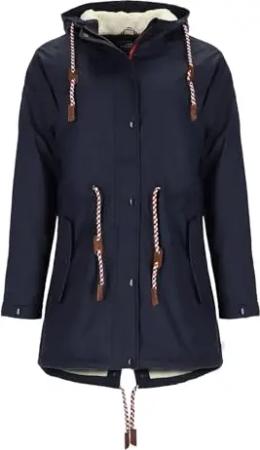 Damen Regenmantel aus PU - Frauen Regenjacke gefüttert mit Teddy-Fleece Futter wasserdicht in Marine Größe 52 bis 54