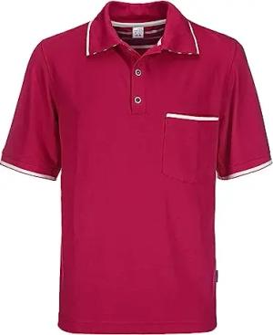 Herren Poloshirt mit Knopfleiste mit 3 Metall-Knöpfen - Unifarbenes T-Shirt mit Brusttasche in Rot Größe L