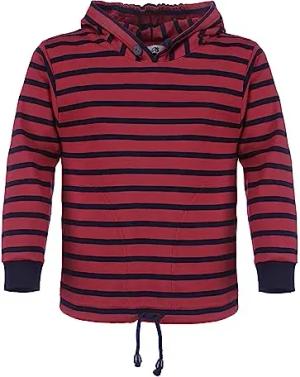 Kinder Kapuzenshirt mit Streifen - Kapuzenpullover mit Kordelzug am Bund in Rot-Blau Größe 116