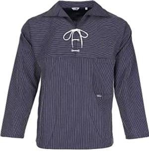 Unisex Original Takelhemd mit V-Ausschnitt mit Kordelschnürung - Maritimes Fischerhemd mit Brusttasche mit schmalen Streifen in Blau Größe Damen 40 - Herren 46