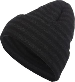 Unisex Strickmütze Mütze gestreift Geringelt - Damen Herren Ringelmütze aus Reiner Schurwolle Merino in Schwarz/Grau