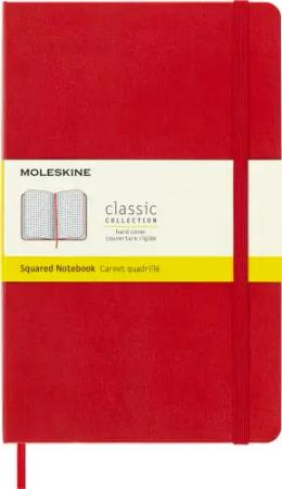 Klassisches Kariertes Notizbuch - Hardcover mit Elastischem Verschlussband - Farbe Scharlachrot - Größe A5 13 x 21 cm- 208 Seiten