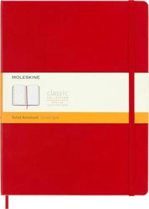 Klassisches Notizbuch, Liniertes Notizbuch, Hardcover und Elastischer Verschluss, Größe XL 19 x 25 cm, Farbe Scharlachrot, 192 Seiten