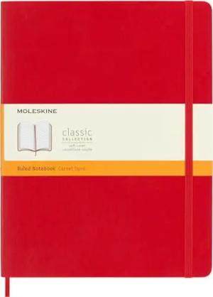 Klassisches Notizbuch, Liniertes Notizbuch, Weicher Einband und Elastischer Verschluss, Größe XL 19 x 25 cm, Farbe Scharlachrot, 192 Seiten
