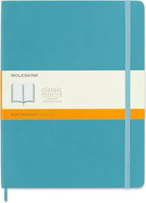 Klassisches Notizbuch, Liniertes Notizbuch, Weicher Einband und Elastischer Verschluss, Größe XL 19 x 25 cm, Farbe Türkisblaues Riff, 192 Seiten