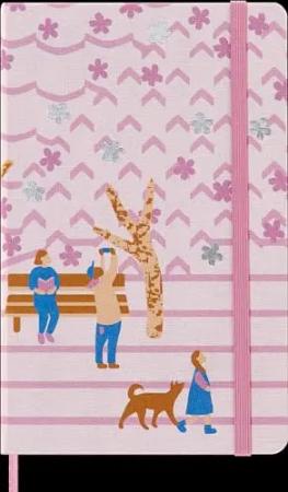 Notizbuch in Limitierte Ausgabe, Sakura Notizbuch, Blanko-Layout und Fester Einband im Textildesign, Maße 13 x 21 cm, Dunkelrosa Bench-Motiv