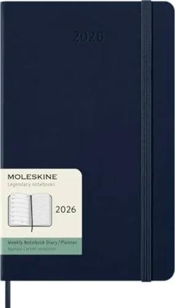 Wochenplaner, Wochenagenda 2026 12 Monate mit Platz für Notizen, mit weichem Einband und Gummibandverschluss, Pocket-Format 9x14, Farbe Blau
