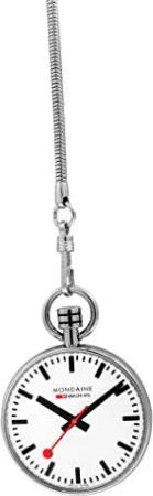 Taschenuhr A660.30316.11SBB 43mm - Bahnhofsuhr Taschenuhr mit Kette rotem Sekundenzeiger - Hergestellt in der Schweiz aus poliertem Edelstahl staubbeständig