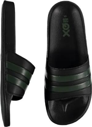 XQ - Flip Flops Herren - Streifen - Schwarz/Armee- Größe 42 -Badeschuhe Hausschuhe - Slippers Sommer Slide Pantoletten - Badelatschen Strand - Indoor/Outdoor