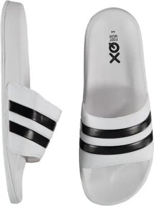 XQ - Flip Flops Herren - Streifen - Weiß/Schwarz - Größe 43 -Badeschuhe Hausschuhe - Slippers Sommer Slide Pantoletten - Badelatschen Strand - Indoor/Outdoor