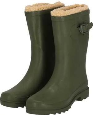 XQ - Regenstiefel Damen - Fake Fur - Regenstiefel mit Futter - Gummi - Regenstiefel Damen - Stiefel Damen - Damen Regenstiefel - Regenstiefel, Khaki - 1 Paar, 37 EU