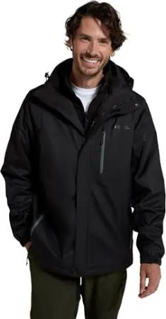 Bracken 3-in-1 wasserdichte Outdoor-Herren-Jacke - wasserabweisende Laufjacke und Arbeitsjacke bei Regen für Herren, Camping-Jacke für Herren Tiefschwarz X-Small