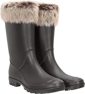 Damen Gummistiefel mit Kunstfell - Beige