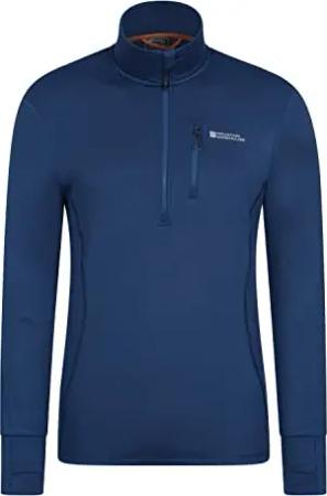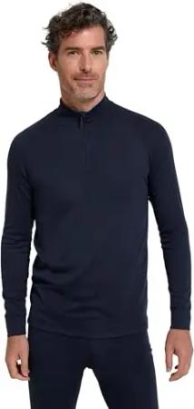 Talus Herren Langarm Oberteil, Runde Halsausschnitt & Reißverschluss - Ski Baselayer, Unterhemd Funktionsunterwäsche, Thermounterwäsche, Winter Marine XX-Small