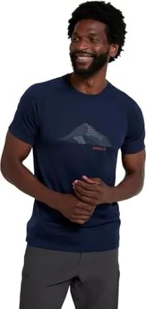 Quest Gemustertes Herren Merino T-Shirt - Dark Blau