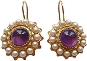 Amethist-Ohrringe Süßwasser-Perlen lila Amethist Amethyst rund Hänger vergoldet Handarbeit Unikat Italien Retro Vintage Geschenk zeitlos