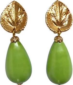 Auffällig: Sehr große leichte Ohrstecker Ohrringe Blatt-Ohrstecker vergoldet Perle grün Tropfen Geschenk stilvoll Statement elegant Designer JUSTWIN