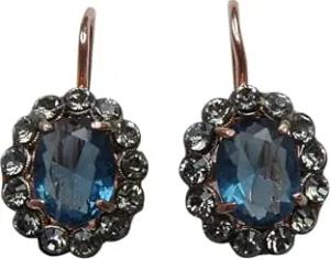 Blaue Achat-Ohrringe Strass Sterling-Silber vergoldet Rot-Vergoldung 18 Karat glänzend Brisur Klappbügel Jugendstil festlich Handarbeit Italien
