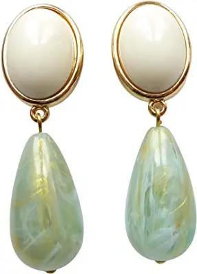 Der absolute Hingucker: Leichte sehr große Ohr-Clips vergoldet Stein beige Anhänger jade-grün Hingucker Geschenk Geburtstag elegant Designer JUSTWIN