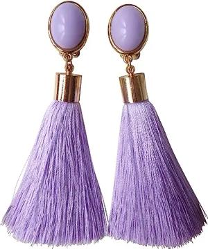 Der absolute Hingucker: Leichte sehr große Ohrstecker vergoldet flieder lila Quaste Boho Hippie Ibiza Look Hingucker Geschenk Geburtstag JUSTWIN