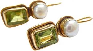 Eckige Peridot-Ohrringe grün echte Süßwasser-Perle Hänger Haken verschließbar Silber vergoldet Retro Vintage Unikat Handarbeit Italien leicht Geschenk