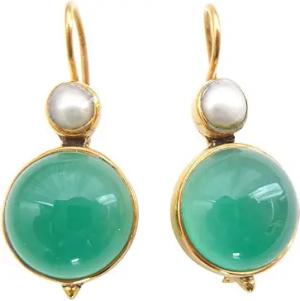 Elegante Achat-Ohrringe grün türkis groß Hänger Haken verschließbar Silber vergoldet kleine Süßwasser-Perle Retro Vintage chic Unikat Handarbeit Italien