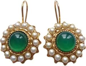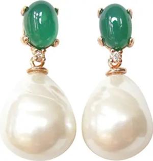 Ohr-Stecker Stein smaragd-grün Barockglas-Perle weiß Sterling-Silber vergoldet Rot-Vergoldung 18 Karat Perlen-Ohrringe klassisch Handarbeit Italien