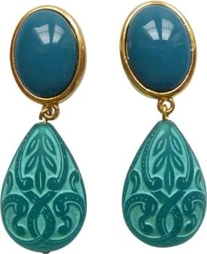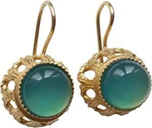 Elegante Chalzedon-Ohrringe leuchtend grün-blau groß Hänger Silber vergoldet Vintage Retro Antik-Look Geschenk Unikat Handarbeit Italien