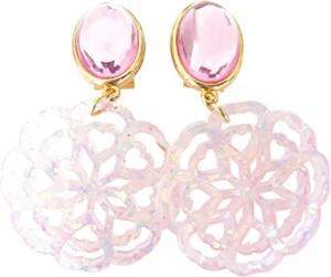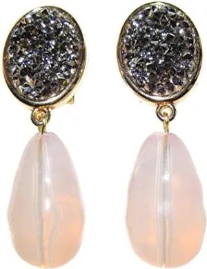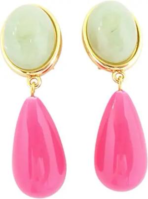 Leichte sehr große Ohr-Clips vergoldet Stein jade-grün Anhänger pink Designer JUSTWIN Geburtstag Fest Party Geschenk Hingucker elegant festlich chic