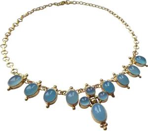 Kette Collier leuchtende blaue Chalzedon-Steine nach Renaissance-Vorbild Silber vergoldet Handarbeit Unikat Italien Antik-Look Vintage Retro hochwertig