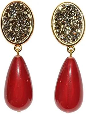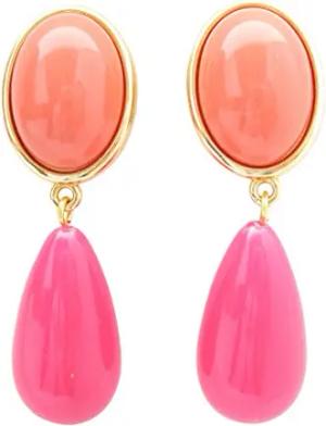 Leichte sehr große Ohr-Clips vergoldet Stein korall-rot Anhänger pink tropfen-förmig Designer JUSTWIN Geburtstag Fest Party Hingucker Geschenk