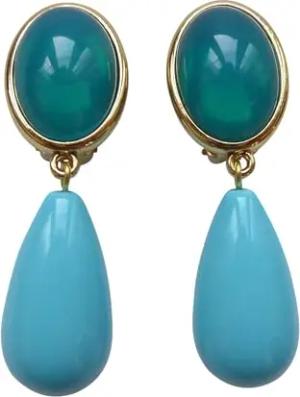 Leichte sehr große Ohr-Clips vergoldet Stein lagune-grün Anhänger türkis tropfen-förmig Designer JUSTWIN Statement Geschenk für Frauen Damen