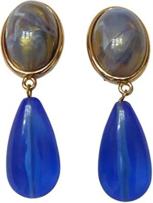 Leichte sehr große Ohrstecker Ohrringe vergoldet Stein bronze marmoriert Anhänger saphir-blau Tropfen elegant edel Geschenk Fest Party Designer JUSTWIN