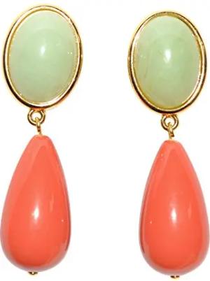 Leichte sehr große Ohrstecker Ohrringe vergoldet Stein jade-grün Anhänger korall-rot Designer JUSTWIN Geschenk Geburtstag Fest Party stilvoll elegant