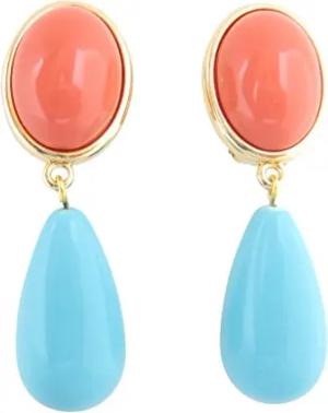Leichte sehr große Ohrstecker Ohrringe vergoldet Stein korall-rot Anhänger türkis hell-blau tropfen-förmig Designer JUSTWIN Hingucker Fest