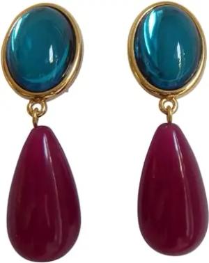 Leichte sehr große Ohrstecker Ohrringe vergoldet Stein smaragd-grün petrol Anhänger granat-rot glänzend tropfen-förmig Party Designer JUSTWIN