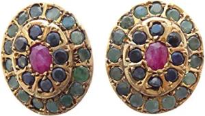 Ohr-Clips Edelstein-Mix roter Rubin kleine blaue Saphir- und Smaragd-Steine Silber vergoldet Handarbeit Unikat Italien Antik-Look Retro hochwertig Geschenk