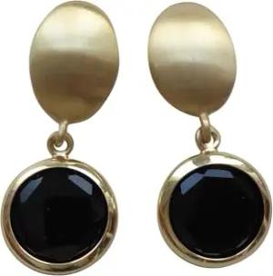 Ohrstecker 23 Karat-Vergoldung Anhänger rund schwarz geschliffenes Glas hochwertig Handarbeit Italien Vicenza klassisch festlich elegant