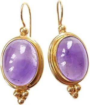 Ovale große Amethist-Ohrringe lila Amethyst Carbochon Hänger Haken verschließbar Silber vergoldet Handarbeit Unikat Italien Edelstein Vintage
