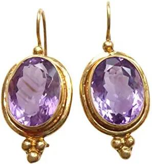 Ovale große Amethist-Ohrringe lila Amethyst facettiert Hänger Haken verschließbar Silber vergoldet Handarbeit Unikat Italien Vintage Retro