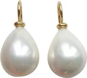Perlen-Ohrringe Tropfen weiß Muschelkern Sterling-Silber gold plattiert 585 Goldschmiede-Arbeit Handarbeit elegant klassisch stilvoll