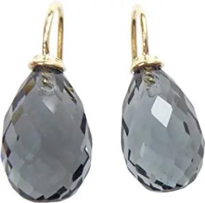 Quarzglas-Ohrringe grau-blau Tropfen Bügel Sterling-Silber vergoldet Geschenk Party Mode-Farbe festlich elegant Handarbeit Heide Heinzendorff